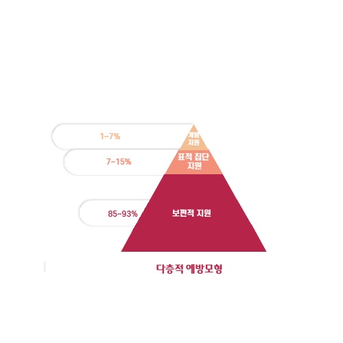 학교 차원의 긍정적 행동 지원에서는 다층적 예방 모형을 적용하고 있습니다.