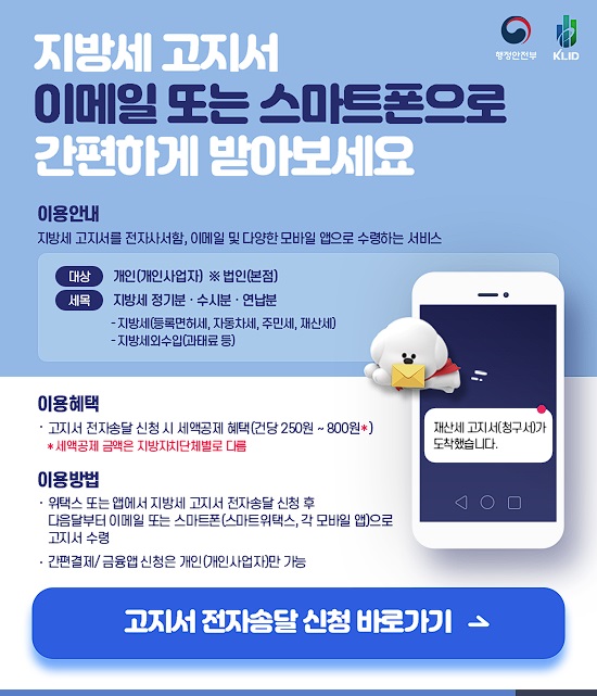 지방세를 전자고지서로 받는 경우 약간(건당 250월~800원)의 세액공제를 받을 수 있습니다.