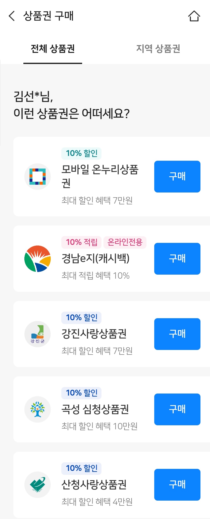 2. 지역상품권을 10% 할인받아 구매하고 편의점이나 베이커리 등에서 통신사 할인 10%를 중복해서 받습니다.
